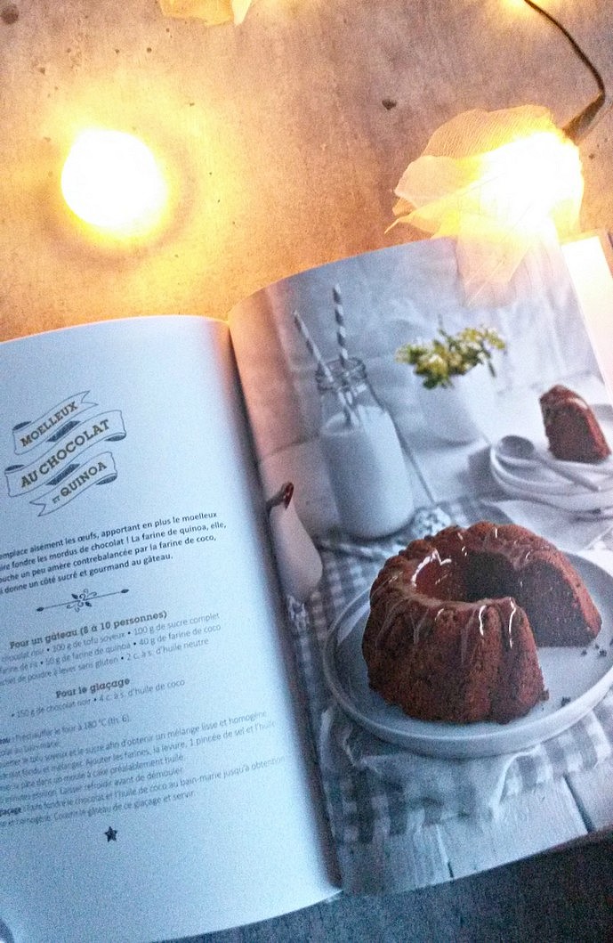 Ensuite, j’ai complètement craqué sur Vegan & sans gluten d’Angélique Roussel, aux éditions La Plage, le premier ouvrage en solo de l’auteure de La gourmandise selon Angie, que vous connaissez tous. Cela fait longtemps que je suis le blog d’Angie, et que je rêve devant ses si jolies photos et recettes. Pour tout vous dire, elle est de ces blogueuses si talentueuses que je me serais procuré son ouvrage peu importe le thème ! Comme son titre l’indique, il s’agit de recettes à la fois végétales et sans gluten, que j’ai trouvées créatives et très gourmandes : houmous de châtaigne et crackers, polenta au beurre persillé, quinoa façon riz au lait… Voilà des recettes que je n’hésiterais pas à faire pour recevoir et bluffer mes invités. Mes recettes chouchou ? Les petits cakes au lait de coco et le moelleux chocolat quinoa.