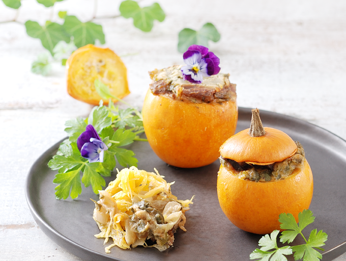Les saveurs typiques d’automne continuent d’être à l’honneur sur le blog. Après la châtaigne, c’est au tour des courges et des cèpes. Sous forme séchée, ces derniers ne rendent pas d’eau et offrent une saveur plus concentrée. Quant aux pommes d’or, je vous avoue les avoir cuisinées pour la première fois. Belle découverte, elles sont toutes simples à évider (à l’aide d’une cuillère parisienne) et à farcir. Et pour finir, une petite astuce dont je ne me lasse pas...