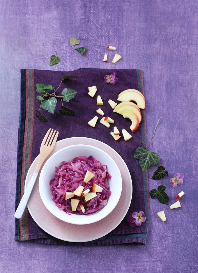 Salade de chou rouge confit à la pomme – Soft red cabbage and apple salad